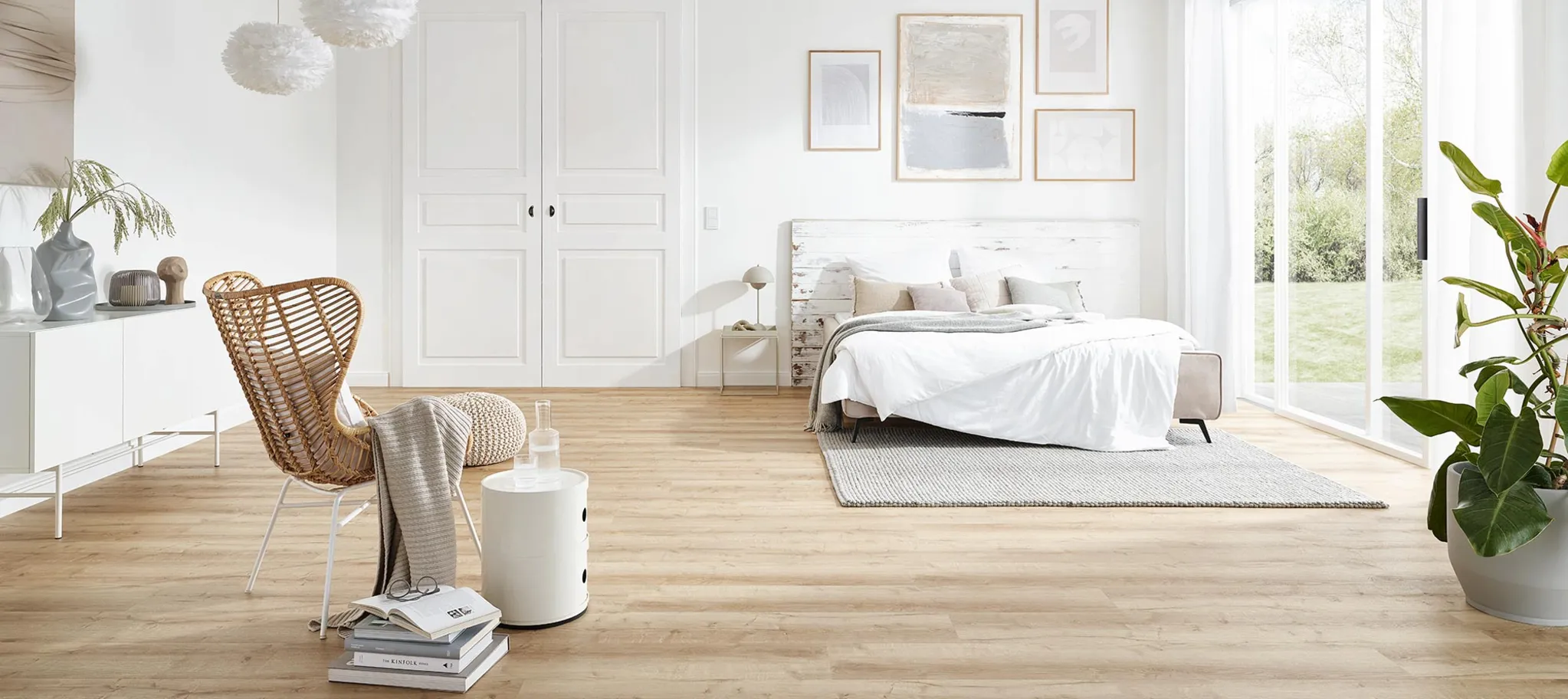 Trotzdem wirkt dieser Einrichtungsstil nicht streng und kühl. Dafür sorgen die hochwertigen Materialien wie helles Eichenholz für Möbel und Fußboden, weißes Leinen für Bettwäsche und Vorhänge sowie Wolle und Kaschmir für weiche Kissen und Plaids. Schlichte, vom skandinavischen oder japanischen Design inspirierte Möbel und helle neutrale Farben charakterisieren diese Wohnwelt. Wichtigste Farbe sind hier alle Abstufungen von Weiß. Dazu passen softes Beige, helles Grau und als Akzent sanfte vergraute Pastelltöne wie Jadegrün, Rosé oder Vanille.