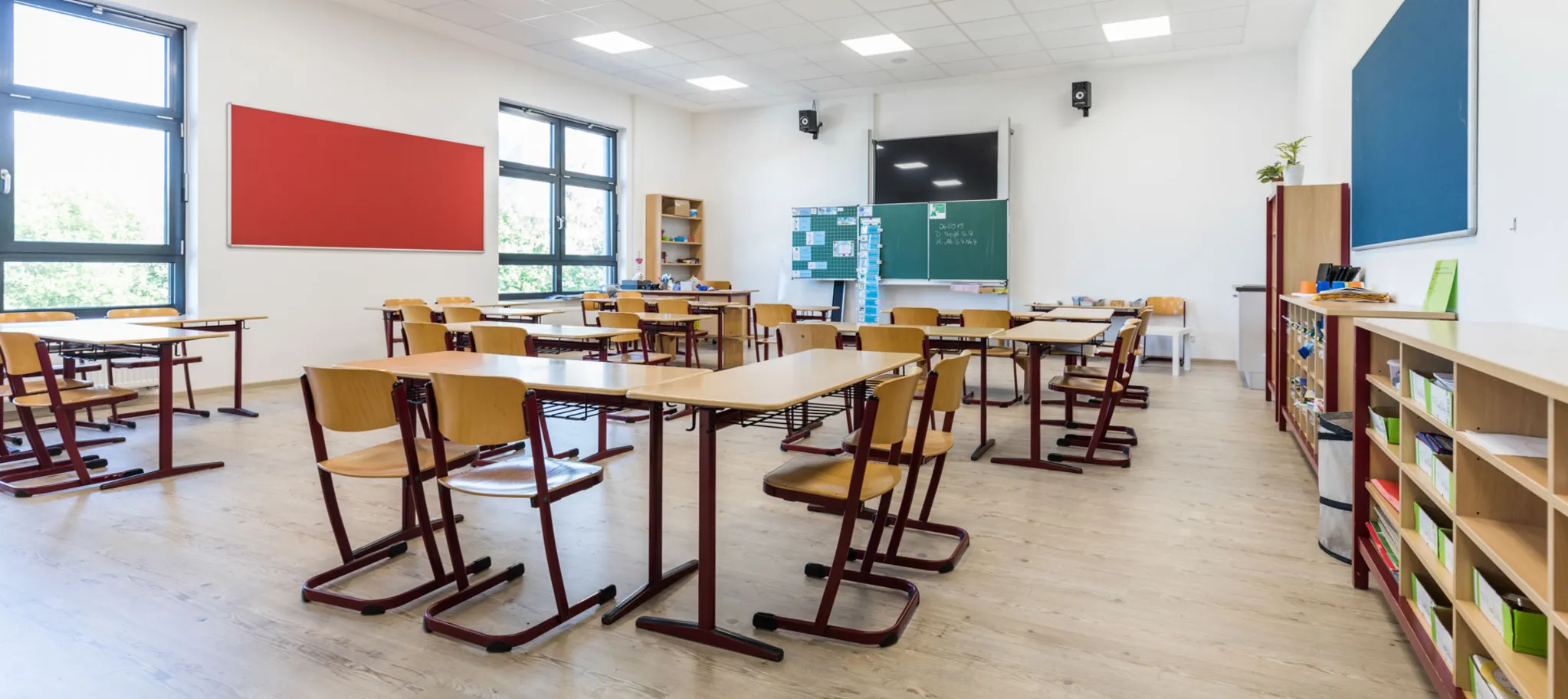 Gesunde Wohnlichkeit fürs Klassenzimmer. Es ist ein Schulgebäude nach aktuellen Standards: Im September 2019 zogen die Kinder der August-Hermann-Francke-Grundschule in Detmold in den modernen Neubau ein. Vier Klassen pro Jahrgang werden dort unterrichtet. Leicht vorzustellen, was an jedem Wochentag los ist, wenn 500 Kinder durch die Gänge flitzen und sich auf 16 Klassenzimmer verteilen.