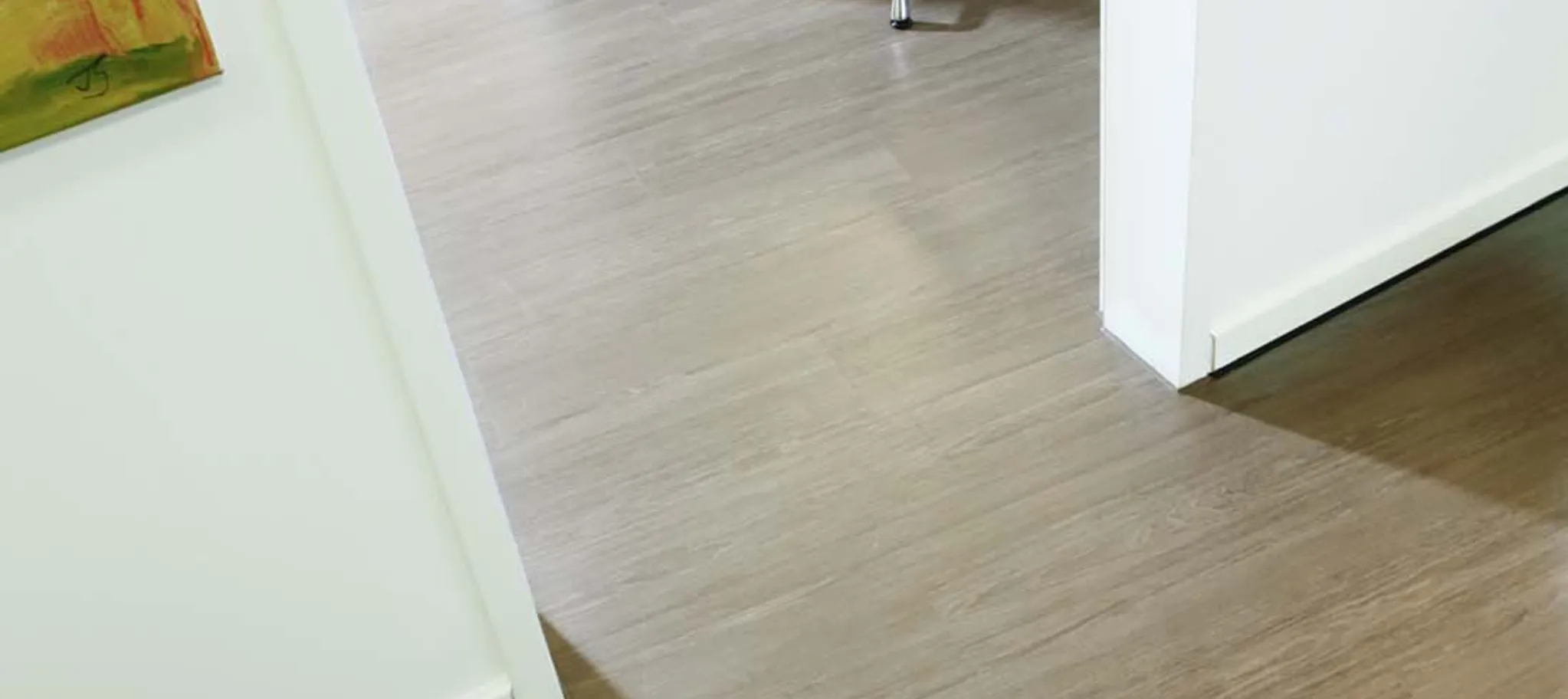 In allen Praxisräumen sollte ein neuer und leiser Bodenbelag verlegt werden, wobei der ökologische Aspekt der Ärztin besonders wichtig war. Ebenso erwartete sie eine beständige und optische Attraktivität sowie Langlebigkeit von der Bodenfläche. Mit PURLINE Biobden wurde der perfekte Praxisboden gefunden. Er vereint auf ideale Weise Wohngesundheit mit einer natürlichen Holzoptik, Komfort bei der Reinigung und Pflege sowie nachweislich Einsparmöglichkeiten im Vergleich zu herkömmlichen, elastischen Böden, durch Einsparungen von Wasser, Pflegemitteln und zeitlichem Pflegeaufwand. Und mit nur 2,5 mm Aufbauhöhe ist PURLINE zudem sanierungsfreundlich.