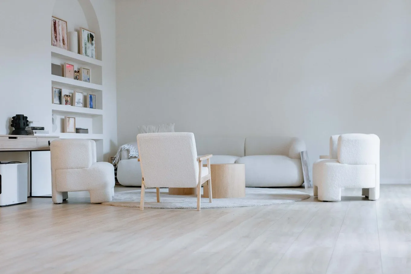 Optisch fügt sich PURLINE harmonisch in das Interior-Konzept ein. Miriam Jacks entschied sich für das Dekor „Fashion Oak Cream“ aus der wineo 1500 Kollektion.